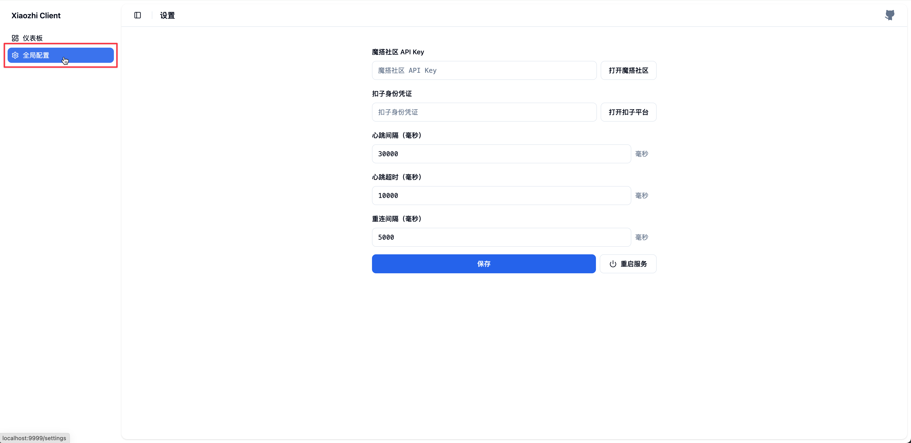 在你安装好 xiaozhi-client 并创建好应用后,即可启动服务